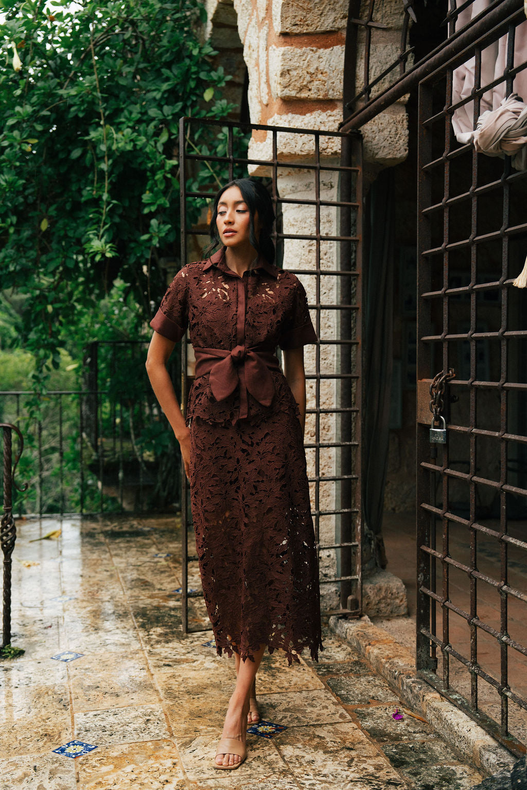 Our Castellana Skirt features a below the knee length pencil style silhouette.