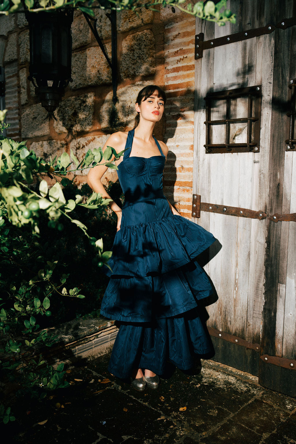 The Volterra Skirt features a floor length hight waisted silhouette with oversized gathered ruffles.